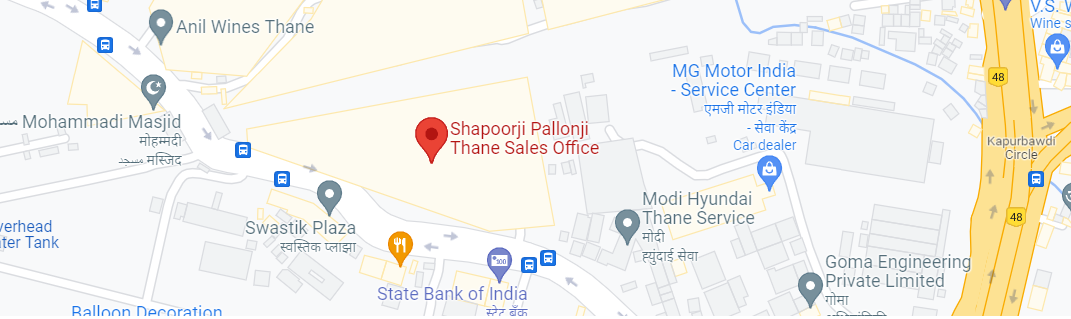 Shapoorji Pallonji Thane Sales Office Located near Pokhran Road 2, it offers ultra-modern 1BHK, 2BHK & 3BHK future-ready homes. Flanked by the Yeoor Hills, the Upvan Lake, and home to the Creek Flamingo Sanctuary, Thane brings you a premium lifestyle with easy access to the city. Pokhran Road No. 2 has emerged as one of the most preferred residential areas in Thane. The location boasts seamless connectivity to all the prominent roadways in the city. While at the cusp of tomorrow, here’s an address that’s in close proximity to major social infrastructure like educational institutions, hospitals, commercial centers and so much more.